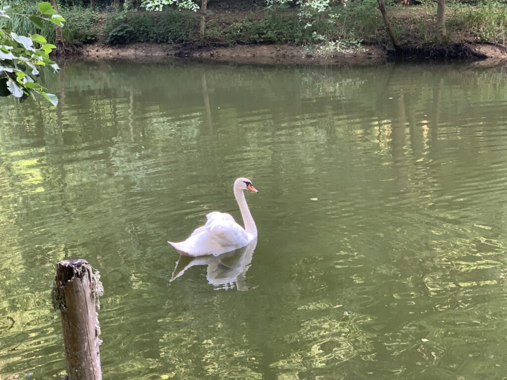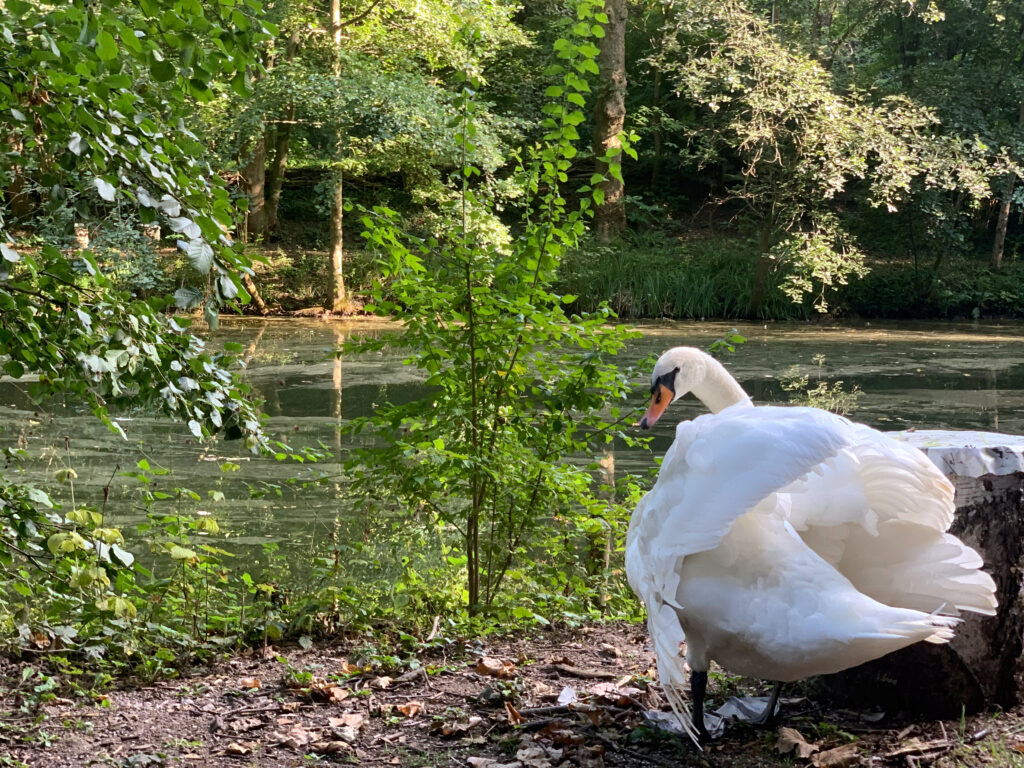 Unsere Schwanendame Odette (✝) kam mit ihrem Partner Derek (✝) im Herbst 2022 aus einer Pflegestelle für Wasservögel zu uns. Die beiden älteren Tiere waren – vermutlich durch menschliche Einflüsse – verletzt worden und haben dauerhafte Schäden davongetragen. Derek ist leider bereits nach kurzer Zeit an den Folgen verstorben. Odette lebte mehrere Jahre friedlich und zufrieden an unserem großen Teich. Sie hat sich ihre Schwimminsel mit Stockenten, Nilgänsen und Fischreihern geteilt. Anfang des Jahres 2026 ist unsere Schwanendame vermutlich einem Angriff durch einen Fuchs zum Opfer gefallen. Ihr Verlust hat uns schwer getroffen.